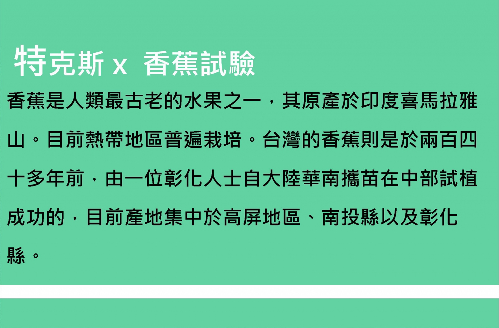 特克斯農友合作試驗 - 長治香蕉種植試驗